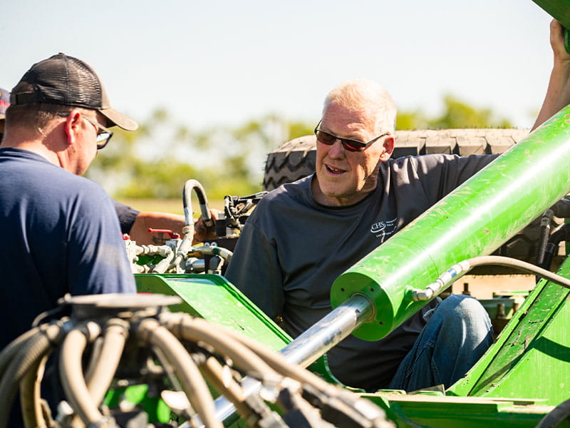 Though Jim Engelhart needed help with soybean planting this year, he still helped Farm Rescue volunteers repair an air seeder to get the crop in.
